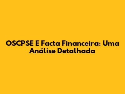OSCPSE E Facta Financeira: Uma Análise Detalhada