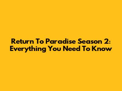 Return To Paradise Season 2: Everything You Need To Know